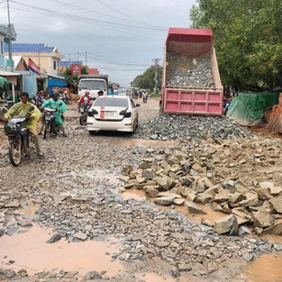 "Sihanoukville is one giant, deafeningly loud, ceaseless, construction site. Dirt roads are turned into mud pits from broken water pipes spilling out into the “street.” Your clothes, skin, hair, and nostrils are coated in red dirt after mere moments outside. Warm pools of foul “water” splash pedestrians from the steady parade of massive trucks passing through. Rubbish is piled up high in every direction--outside of every restaurant, residence, and shop. The smell of rancid garbage turns your stomach sour and mouth breathing is the only means of escape. It is a nightmare."
