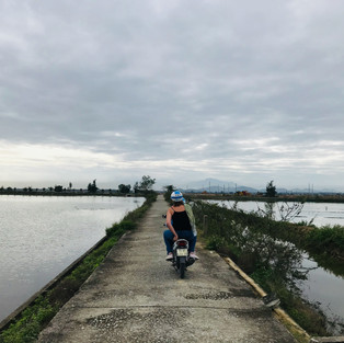 The real highlight, though, was the day spent riding on the back of motorbikes getting a tour of locations in and around Hue. We sped through rice paddies, patronized places that make incense and nón lá (triangle hat), and walked through lively markets that abutte abandoned carnival rides (something we actually saw a lot of in Vietnam). We were also afforded the chance to visit some historically significant sites like the Thien Mu Pagoda (a Buddhist temple and unofficial symbol of Hue that is better known for housing the car of the monk who burned himself alive during the height of the fighting between Catholics and Buddhists) and Hamburger Hill. (Note, the name Hamburger Hill is not as delicious as it sounds. The Vietnam War battle that took place there was so gruesome that the location was named for the casualties whose bodies were so obliterated by the heavy fighting that remains strewn across the land resembled ground meat.)