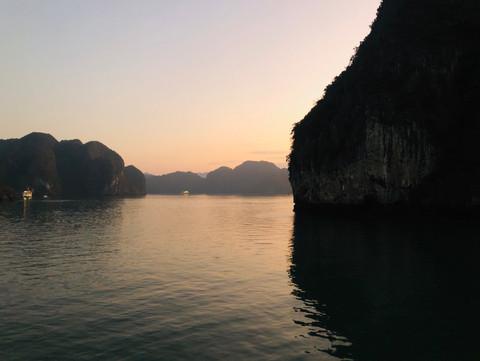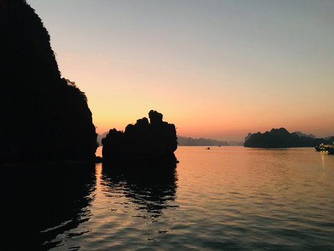 Of all the places to park our boat at sunset, our captain parked it on the east side of a rock formation, blocking us from the remaining sun and its setting