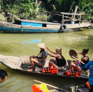 One special part about our trip to Ho Chi Minh was the day our group spent at the Mekong Delta. We took tuk-tuks, paddled the river donning nón lá, and learned about coconut production and uses including sampling the variety of coconut-sourced candies and teas. Returning to HCM also proved restful as we got to enjoy coconut water and fresh coconut on a private passenger boat back.
