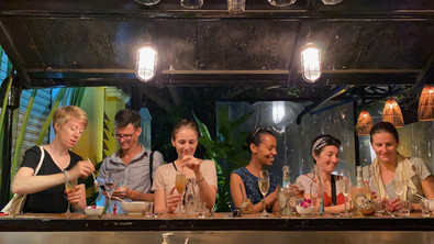 Our first evening we joined an AirBnB “secret bar” tour where we were given ample food and drinks at 5 hidden spots in the city: Rooftops, the back of a clothing store, a Hollywood movie location, and a secluded upstairs of a restaurant. At the second-to-last stop, we even got to make our own drinks, and I was given my last motorbike ride in Vietnam from our host.